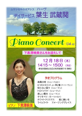 ハーヴ武蔵関でこれまでに開催されたピアノ・コンサート(ミニコンサート)のチラシです。
