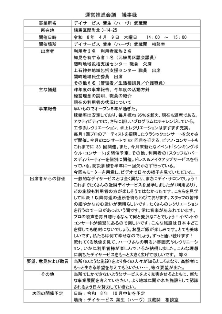 半年に一度開催されるこの会議ですが、お客様をお招きしてハーヴ武蔵関の事業報告、事業方針を述べる重要な会議なのですよね。